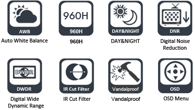 1.0MP/720P/960H/With IR‐CUT,WDR, 3D NR, Sense‐up, OSD