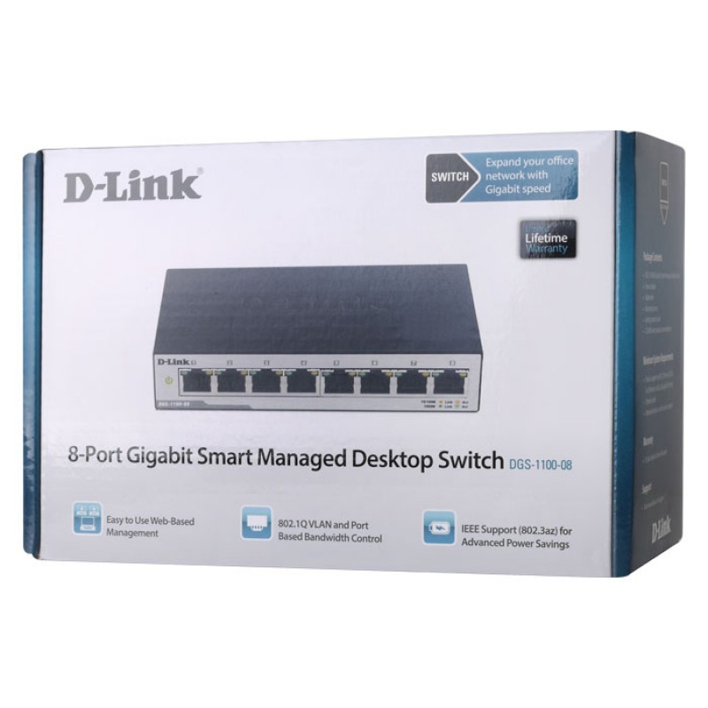 Το D-Link DGS-1100-08V2 παρέχει μια οικονομικά προσιτή λύση για μικρές και μεσαίες επιχειρήσεις και είναι ιδανικό για την επέκταση του υφιστάμενου δικτύου της επιχείρησης, π.χ. σε meeting rooms. Διαθέτει χαρακτηριστικά προηγμένης διαχείρισης, παρέχοντας στον διαχειριστή εργαλεία διάγνωσης και αντιμετώπισης προβλημάτων, ενώ οι ενεργειακά αποδοτικές τεχνολογίες παρέχουν μια ευέλικτη λύση ανάλογα με τις απαιτήσεις δικτύωσης.