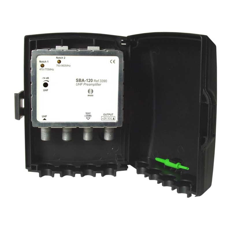 Ο νέος προενισχυτής της Ikusi, ακούει στον κωδικό SBA-120 και έρχεται να δώσει λύσεις σε δύσκολες αποστολές. Η σύγχρονη σχεδίαση του ενισχυτή έχει καταφέρει να αποδώσει πολύ χαμηλό συντελεστή θορύβου, με ταυτόχρονα υψηλή στάθμη εξόδου και μεγάλη απολαβή. Με αυτόν τον τρόπο, ο ενισχυτής είναι κατάλληλος για λήψη οριακών σημάτων, για να μην επιδεινώσει τα σήματα με χαμηλό C/N. Πιο συγκεκριμένα, ο ενισχυτής παρουσιάζει 35dB απολαβή στα UHF, συντελεστή θορύβου ≤3 και στάθμη εξόδου 114dBμV.