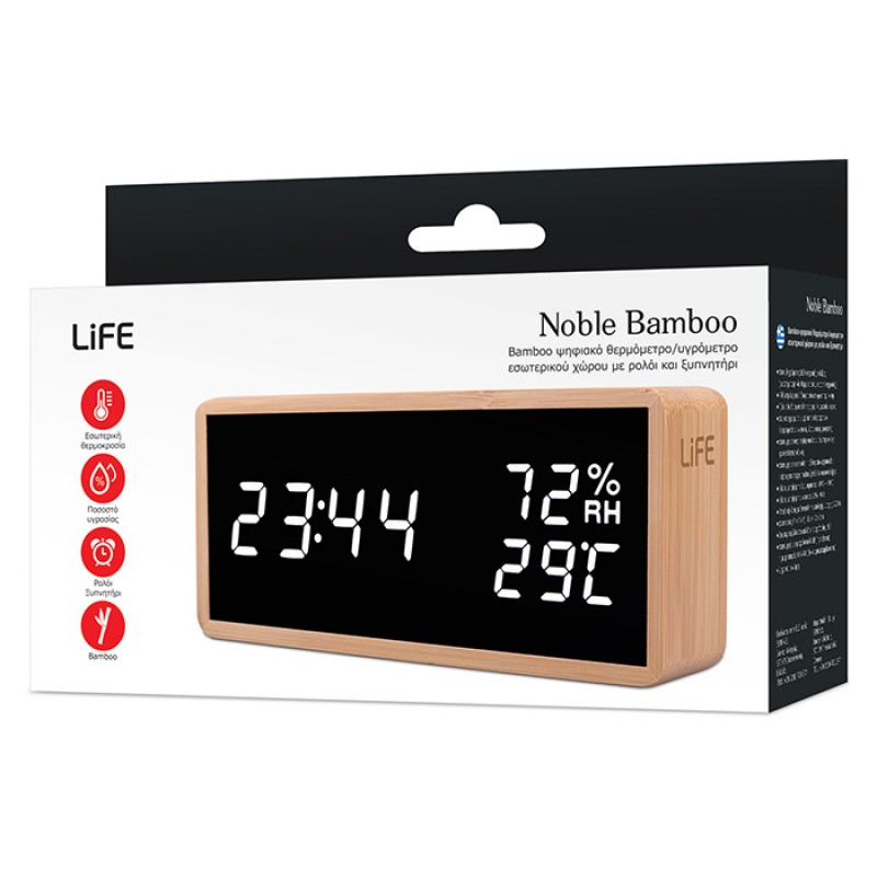 LIFE Noble Bamboo Ξύλινο ψηφιακό θερμόμετρο-υγρόμετρο