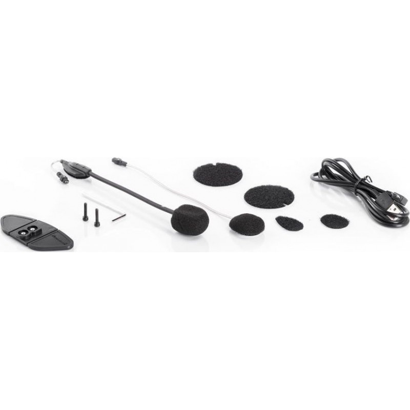 - Στην συσκευασία περιλαμβάνεται 1 συσκευή, βραχίονας και ενσύρματο μικρόφωνο, σύστημα τοποθέτησης για όλους τους τύπους κράνους, κιτ ήχου με εξαιρετικά λεπτά ηχεία, 1 ηχείο Hi-Fi, και καλώδιο USB.