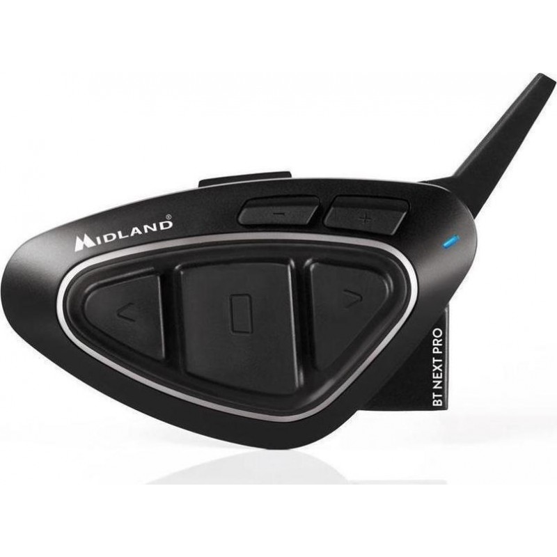 Το Midland BT Next Pro είναι η νέα, βελτιωμένη, ασύρματη επικοινωνία τεχνολογίας Bluetooth πολλαπλών μοτοσυκλετιστών τέταρτης γενιάς. Διαθέτει λειτουργία συνδιάσκεψης (Conference) για ταυτόχρονη επικοινωνία έως και 8 χρηστών ή 6 ζευγάρια point to point έως 1,6 km. Η συσκευή ενδοεπικοινωνίας μπορεί να συνδεθεί μέσω Bluetooth με κινητά τηλέφωνα (υποστηρίζει μέχρι 2 κινητά), πλοηγούς GPS, MP3/4 και σύνδεση με PMR446 μέσω Bluetooth.