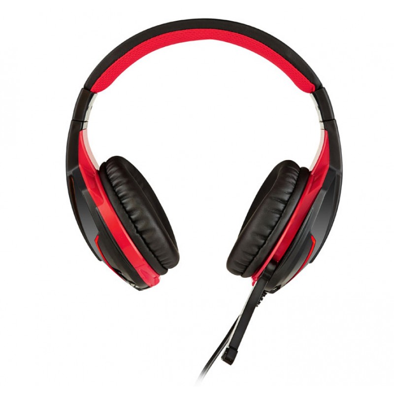 Gaming headset με ρυθμιζόμενο σε κλίση μικρόφωνο, σε μαύρο χρώμα και κόκκινο LED φωτισμό.