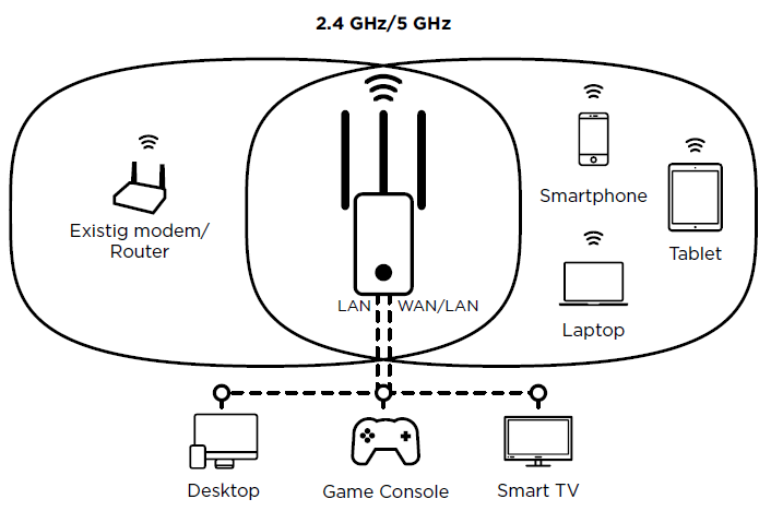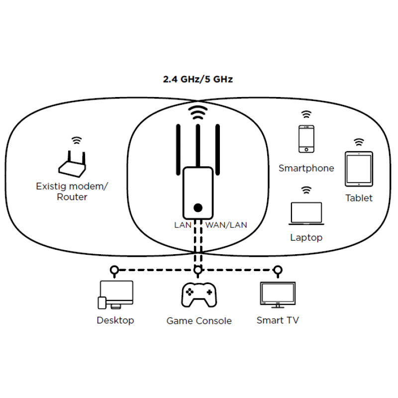 Το Strong Dual Band Repeater 750 είναι η ιδανική λύση για να επεκτείνετε την κάλυψη του 802.11ac modem ή router σας σε λίγα μόνο λεπτά. Σε μία μέγιστη ταχύτητα 750 Mbit/s, το Dual Band Repeater 750 είναι ένα από τις μικρότερα και ισχυρότερα dual band 802.11ac Repeaters. Το σύστημα των 3 ρυθμιζόμενων εξωτερικών κεραιών σε συνδυασμό τα με 802.11ac προηγμένα χαρακτηριστικά θα ενισχύσει μια ευρεία και αξιόπιστη κάλυψη Wi-Fi σε όλη την οικία σας.