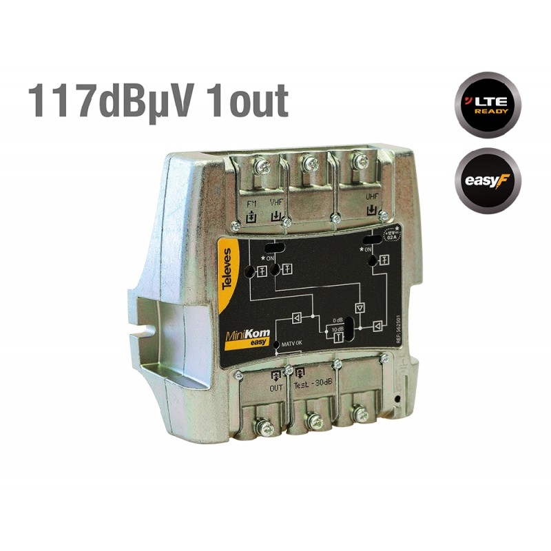 Ενισχυτής κεντρικής MINIKOM με 3 εισόδους [VHF-FM-UHF]. Διαθέτει 4G-LTE φιλτρο με διακόπτη ON/OFF και έξοδο DC (on-off) για τροφοδοσία κεραιών HD B.O.S.S. ή προενισχυτών/ ενεργών διπόλων.