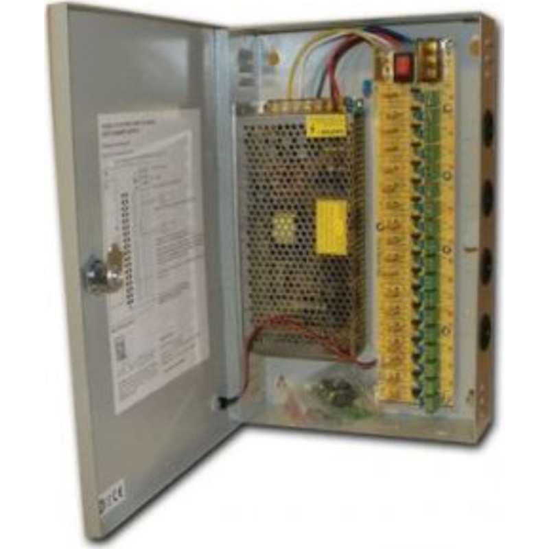 FTT9-009 Τροφοδοτικό CCTV Καμερών 18 Εξόδων 20A, Σε Μεταλλικό Κουτί Με Κλειδαριά