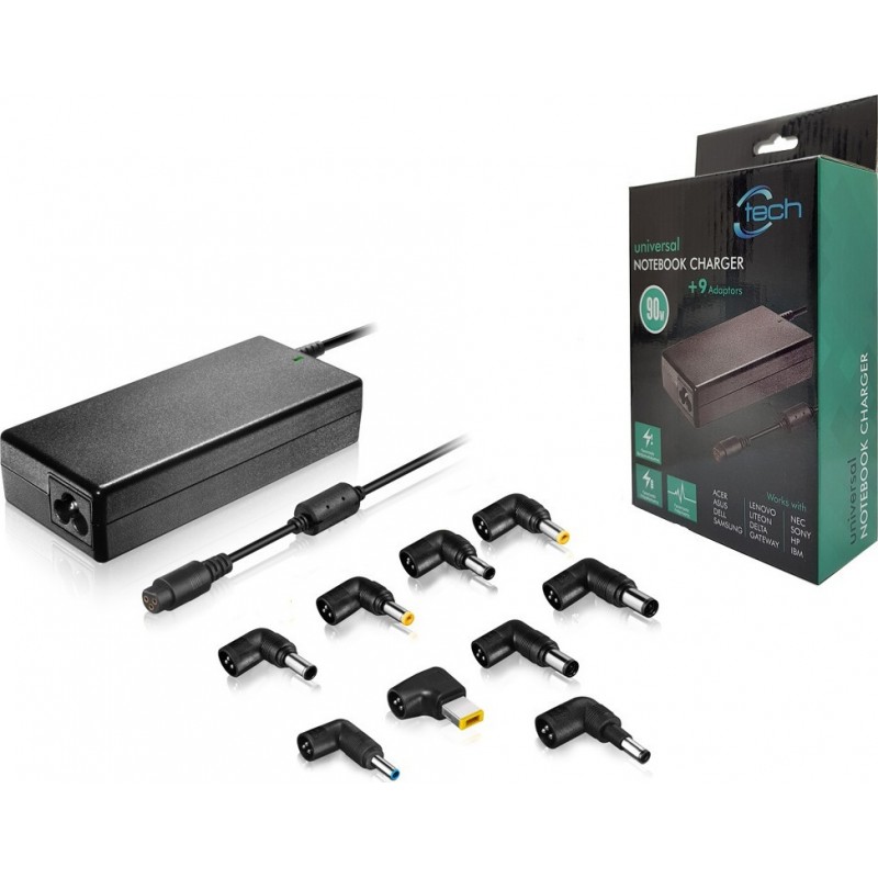 Φορτιστής 90W με βύσματα για προσαρμογή σε διάφορα μοντέλα και προστασία βραχυκυκλώματος, υπερφόρτωσης και υπέρτασης.