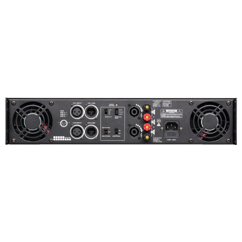 προστασια των ηχείων. Διαθέτει εισόδους XLR & link XLR , εξόδους speakon & μπόρνες για γυμνό καλωδιο . Ανεμιστήρες μεταβλητής ταχύτητας.