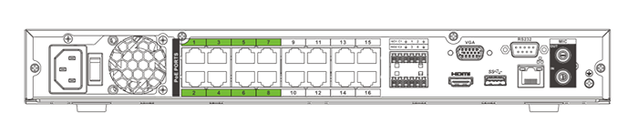 Καταγραφικά (NVR) ePoEΤα καταγραφικά ePoE έχουν 8 "πράσινες" θύρες ePoE που υποστηρίζουν τις μεγάλες αποστάσεις εφόσον συνδεθούν ePoE κάμερες: 300m (100Mbps) ή 800m (10Mbps). Υπάρχουν 3 μοντέλα με 2/4/8 SATA θύρες για αντίστοιχες δυνατότητες αποθήκευσης. Το προηγμένο chip Η.265 αναπτύχθηκε για να υποστηρίζει και ανάλυση 4Κ με απόδοση ζωντανής προβολής ή αναπαραγωγής. Συγκεκριμένα υποστηρίζονται 16 κανάλια στα 1080P ή 4 κανάλια στα 4K. Ως υποκατηγορία της σειράς Pro NVR, κληρονομούν όλες τις δυνατότητες όπως: έξυπνη ανίχνευση, ανίχνευση προσώπου, αποκωδικοποίηση Smart H.265+, ANPR, POS και custom διαχωρισμό οθόνης. Τα καταγραφικά με τεχνολογία ePoE είναι πλήρως συμβατά με τις απλές κάμερες PoE. |