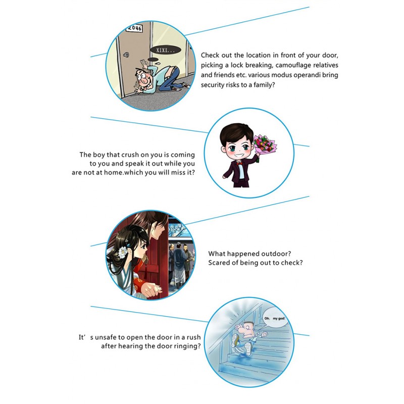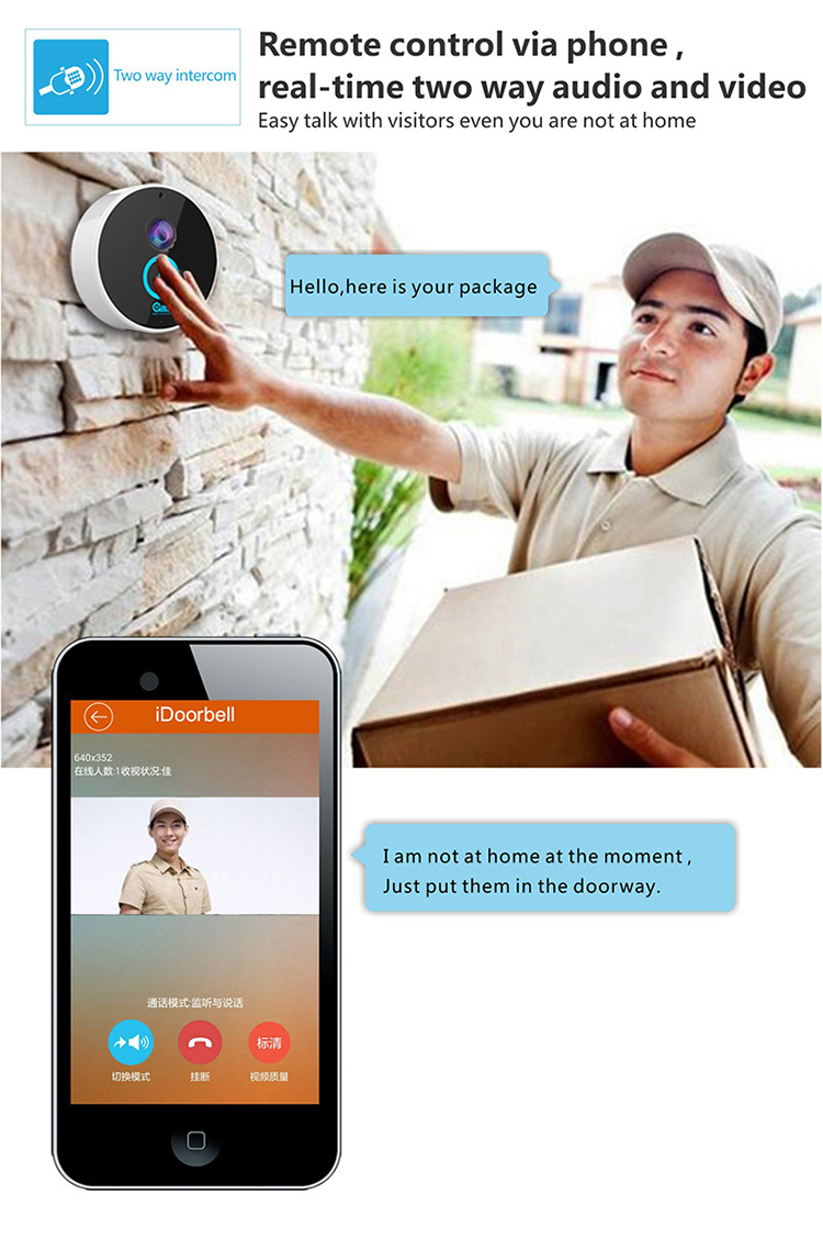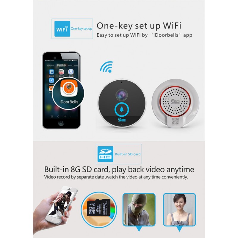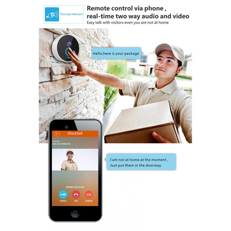 Η θυροτηλεόραση τη σημερινή εποχή θα πρέπει να αντιμετωπίζετε πλέον ως σύστημα ασφαλείας. Δεν είναι λίγες οι περιπτώσεις που ανοίγαμε την πόρτα μας σε ένα άγνωστο χωρίς να τον δούμε. Το iDoorbell μας εξασφαλίζει την ασφάλεια και την ησυχία μας. Γνωρίζουμε ποιος χτυπάει την πόρτα μας είτε είμαστε εκεί είτε όχι, του μιλάμε τον ακούμε, τον βλέπουμε και αυτόματα καταγράφετε στην κάρτα μνήμης. Η ασύρματη θυροτηλεόραση iDoorbell συνδεδεμένη με το ασύρματο δίκτυο WiFi μας στέλνει ειδοποίηση στο κινητό εάν κάποιος κινηθεί μπροστά στην κάμερα με την ανίχνευση κίνησης που διαθέτει. Με αυτόν τον τρόπο έχουμε και συναγερμό έξω από την πόρτα μας. Στην συσκευασία του θα βρούμε και το ασύρματο κουδούνι για την ηχητική ειδοποίηση στον χώρο μας.