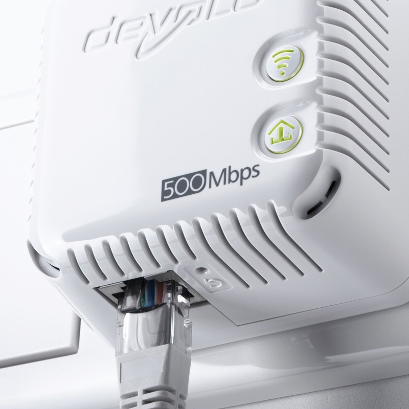 DEVOLO dLAN 500 WiFi Powerline (09082)Επιτέλους ασύρματο δίκτυο WLAN σε κάθε χώρο! Smartphones, Tablets και Φορητοί Υπολογιστές απολαμβάνουν τέλειο σήμα παντού.Με ταχύτητα και σταθερότητα - ακριβώς εκεί που μέχρι σήμερα είχατε αδύναμο έως καθόλου σήμα.Χάρη στη θύρα LAN μπορείτε οποτεδήποτε να συνδέσετε μία ακόμη συσκευή (Smart TV, κονσόλες παιχνιδιών).Παραδείγματα χρήσηςΤο απλό οικιακό ..