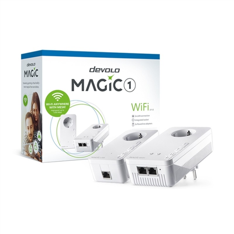Καθίστε αναπαυτικά! Με το devolo Magic 1 WiFi κάνετε stream τις μεγαλύτερες κινηματογραφικές ταινίες – με την καλύτερη εικόνα στα απίστευτα 8K. Και όχι μόνο από τη Smart TV στον καναπέ σας. Το πλεγματικό δίκτυο WiFi επιτρέπει τη ροή Internet παντού έως το tablet στον κήπο . Αγγίξτε τα αστέρια! Το devolo Magic 1 WiFi σάς μεταθέτει κατευθείαν στο μέλλον. Ανακαλύψτε εικονικούς κόσμους με VR gaming κορυφαίας κατηγορίας. Μετατρέψτε το σπίτι σας σε ένα μαγικό ναό πολυμέσων – με εκπληκτικά σταθερό και απίστευτα γρήγορο πλεγματικό multi-room WiFi. Το πρότυπο WLAN ac και η πανίσχυρη τεχνολογία Powerline εξασφαλίζουν απίστευτα υψηλές ταχύτητες έως 1200 Mbit/s, ακόμη και σε εξαιρετικά μεγάλες αποστάσεις έως και 400 μέτρα. Μπορείτε να συνδέσετε σταθερές συσκευές, όπως Smart TV ή κονσόλα στις δύο γρήγορες θύρες Ethernet LAN. Έχετε τον έλεγχο όλων των προσαρμογέων devolo Magic εύκολα και άνετα από τη νέα, πρωτοποριακή εφαρμογή της devolo. Απολαύστε τη μαγική και ολοκληρωμένη εμπειρία πολυμέσων του μέλλοντος - με το devolo Magic 1 WiFi!