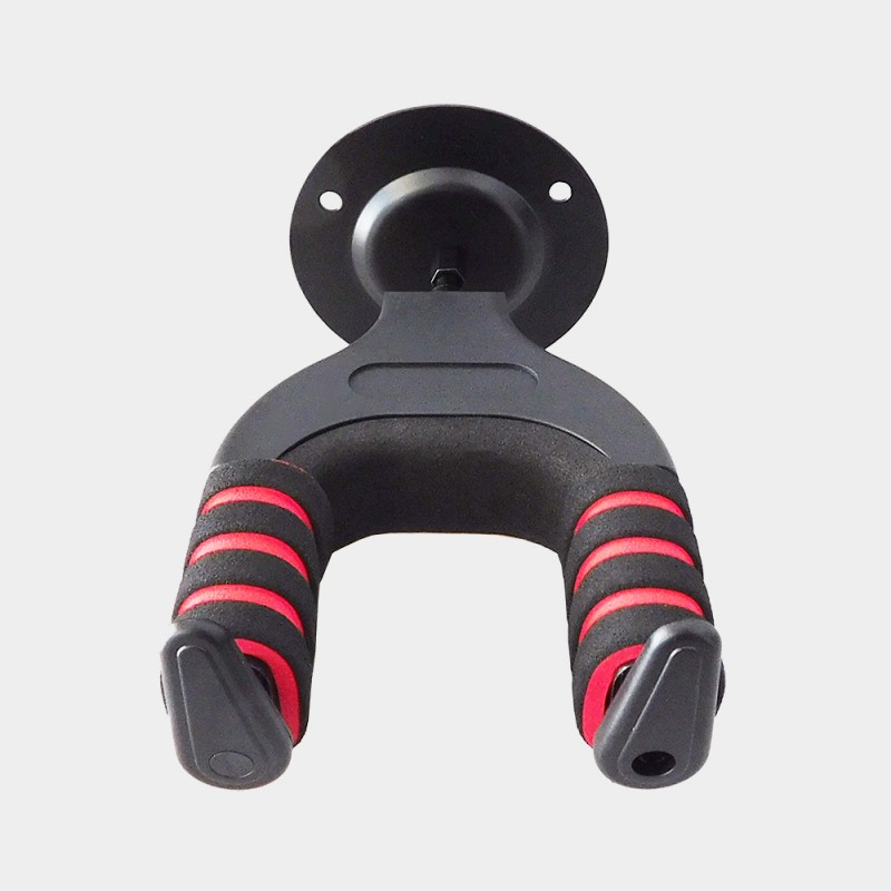 DG008 βάση τοίχου για ακουστικές, ηλεκτρικές και μπάσο κιθάρες με την έξυπνη τεχνολογία "Auto Lock" από την εταιρία Audio master. Το σύστημα "Auto Lock" ασφαλίζει αυτόματα το λαιμό τού οργάνου στην βάση Τα πτερύγια ανοίγουν ξανά αυτόματα όταν το όργανο σηκωθεί από την βάση. Διαθέτει ποιοτικό αφρώδες καουτσούκ για την μέγιστη προστασία του οργάνου από γρατζουνιές. Διαθέτει μεταλλική βάση με 3 τρύπες για βέλτιστη τοποθέτηση στον τοίχο. Χρώμα μαύρο-κόκκινο. Βάρος 0,35kg