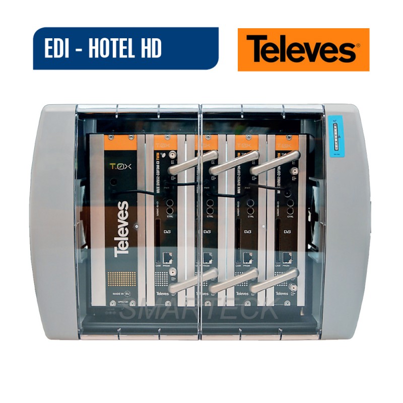 Το επαγγελματικό τηλεοπτικό πακέτο EDI - HOTEL HD Large είναι modular headend μονάδα της επαγγελματικής σειράς Τ.0Χ της TELEVES, μέσα σε κυτίο της ίδιας σειράς, με ενεργό εξαερισμό και κλείδωμα, ή οποία περιέχει έτοιμα, προγραμματισμένα πακέτα των πιο δημοφιλών δορυφορικών τηλεοπτικών καναλιών, τα οποία θα ικανοποιήσουν κάθε αίτημα τηλεοπτικής ψυχαγωγίας και ενημέρωσης των φιλοξενούμενων του ξενοδοχείου. Απαρτίζεται από κωδικούς προϊόντων εξολοκλήρου κατασκευασμένους από τον διεθνούς φήμης Όμιλο TELEVES, ο οποίος εξειδικεύεται σε high-end εφαρμογές λήψης-επεξεργασίας και διανομής τηλεοπτικών σημάτων, οι οποίες προορίζονται για την υλοποίηση ιδιαίτερα απαιτητικών projects σε πολυτελείς ξενοδοχειακές μονάδες και φημισμένα resorts παγκοσμίως.