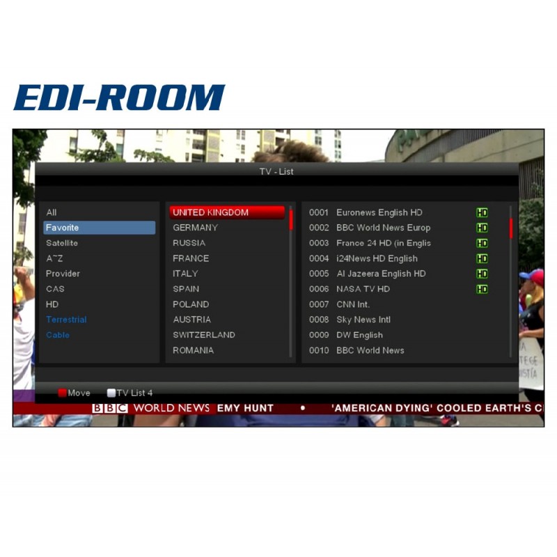 7. Ο combo δέκτης του EDI-ROOM, διαθέτει ήδη προγραμματισμένα τα δορυφορικά κανάλια στο μενού του