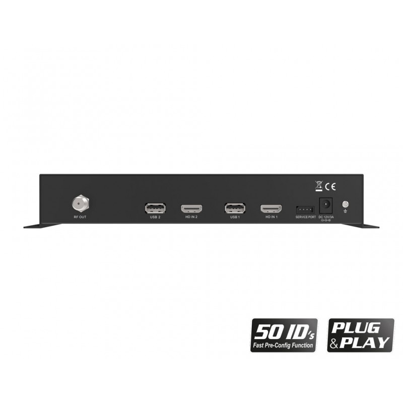 - Ψηφιακός 4-κάναλος HDMI διαμορφωτής, με λειτουργία FAST PRE-CONFIG (50 έτοιμα και επιλεγόμενα ID) και επιπλέον λειτουργία CONFIG DATA (εξαγωγή σε USB, εύκολη μεταφόρτωση στο Modulator)