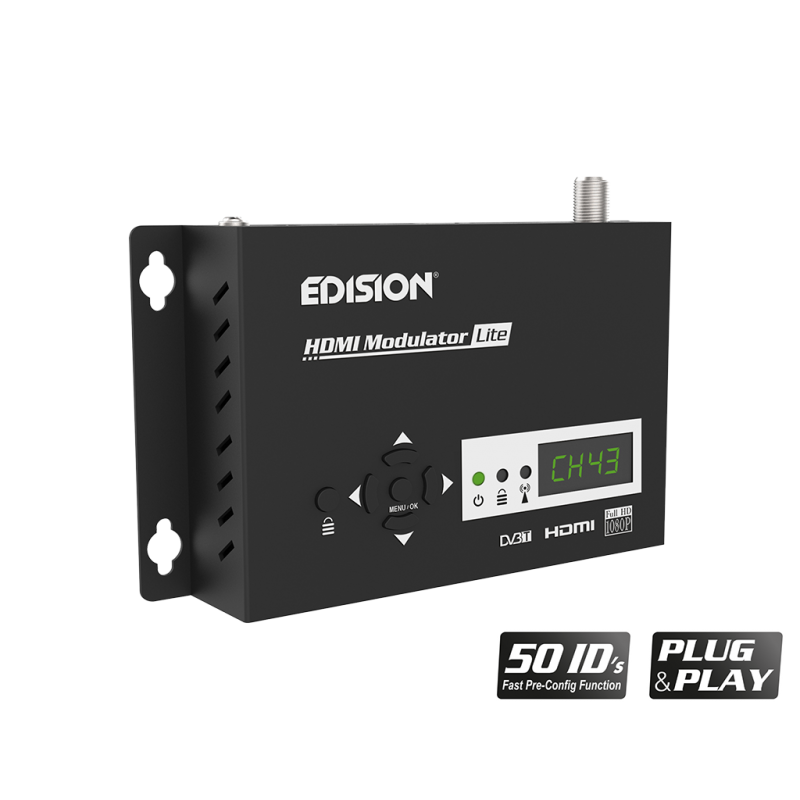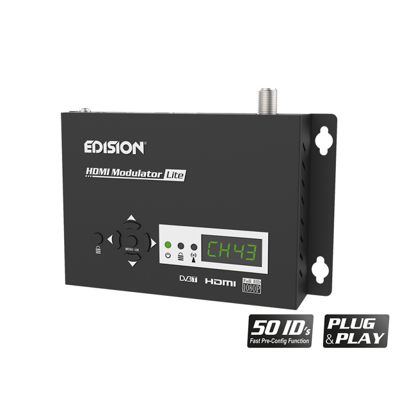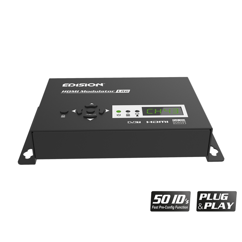Ψηφιακός μονοκάναλος HDMI διαμορφωτής, με έξοδο Επίγειου ψηφιακού DVB-T VHF/UHF MPEG4 σήματος. Διαθέτει έτοιμες και πολύ εύκολες ρυθμίσεις για κάθε τύπο εγκατάστασης. Απο κάθε συσκευή με HDMI έξοδο (δέκτες δορυφορικού & επίγειου ψηφιακού τηλεοπτικού σήματος, κάμερες, DVD, DVR και κάθε άλλη πηγή-συσκευή εξόδου σήματος HDMI) παράγει MPEG4 ΕΠΙΓΕΙΟ ΨΗΦΙΑΚΟ σήμα έως FULL HIGH DEFINITION 1080p, με επιλογή εξόδου σε μπάντα VHF ή UHF. Παρέχει εξαιρετική ποιότητα σήματος στην έξοδο του, σε συνδυασμό με αξιόπιστη λειτουργία και σταθερή απόδοση, σε κάθε διάταξη εγκατάστασης. Διαθέτει USB θύρα για λειτουργία CONFIG DATA. H ΛΕΙΤΟΥΡΓΙΑ FAST PRE-CONFIG, παρέχει 50 ΕΤΟΙΜΑ ΕΠΙΛΕΓΟΜΕΝΑ ID, για πολύ εύκολο προγραμματισμό, όταν έχουμε πάνω απο 1 συσκευή στην ίδια εγκατάσταση.