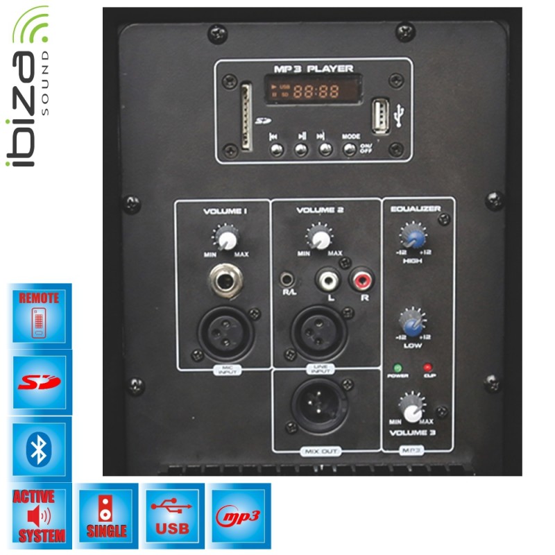 Το Ibiza Sound BT8A, είναι ένα ενεργό ηχείο 2 δρόμων με δυνατότητα αναπαραγωγής αρχείων MP3 μέσω USB, SD και BLUETOOTH. Ακούστε την αγαπημένη σας μουσική μαζί με τους φίλους σας ή κάντε τα πρώτα σας βήματα σαν DJ, με αυτό το ηχείο. Η καμπίνα του είναι κατασκευασμένη από ανθεκτικό πλαστικά ABS. Διαθέτει χειρολαβές και ρόδες για εύκολη μεταφορά.