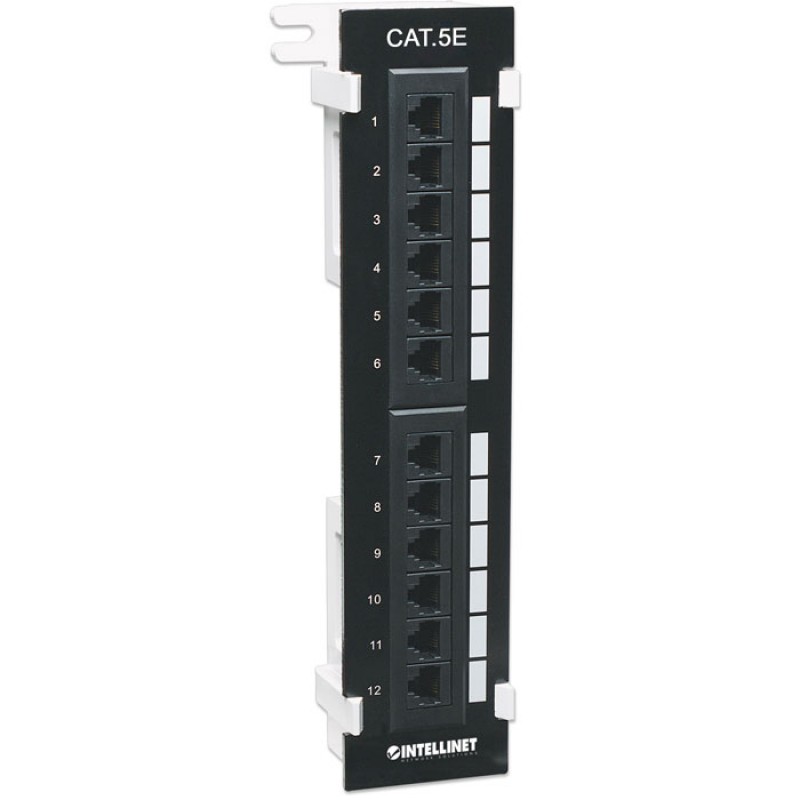 Επιτοίχιο patch panel κατηγορίας CAT5e UTP, 12 θυρών σε μαύρο χρώμα