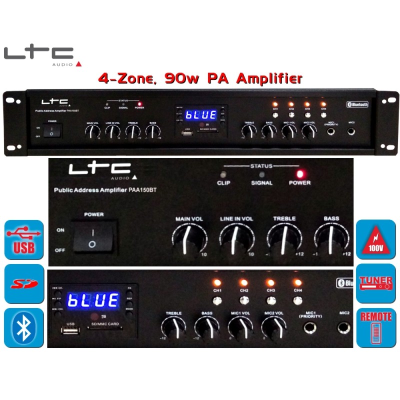 PAA150BT Ενισχυτής PA 4 ζωνών 90w με ραδιόφωνο και Bluetooth, από την LTC Audio.