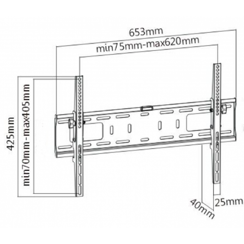 Μέγιστο βάρος φορτίου 25kgs. Απόσταση από το τοίχο 70-365mm. Max Vesa: 600x400.