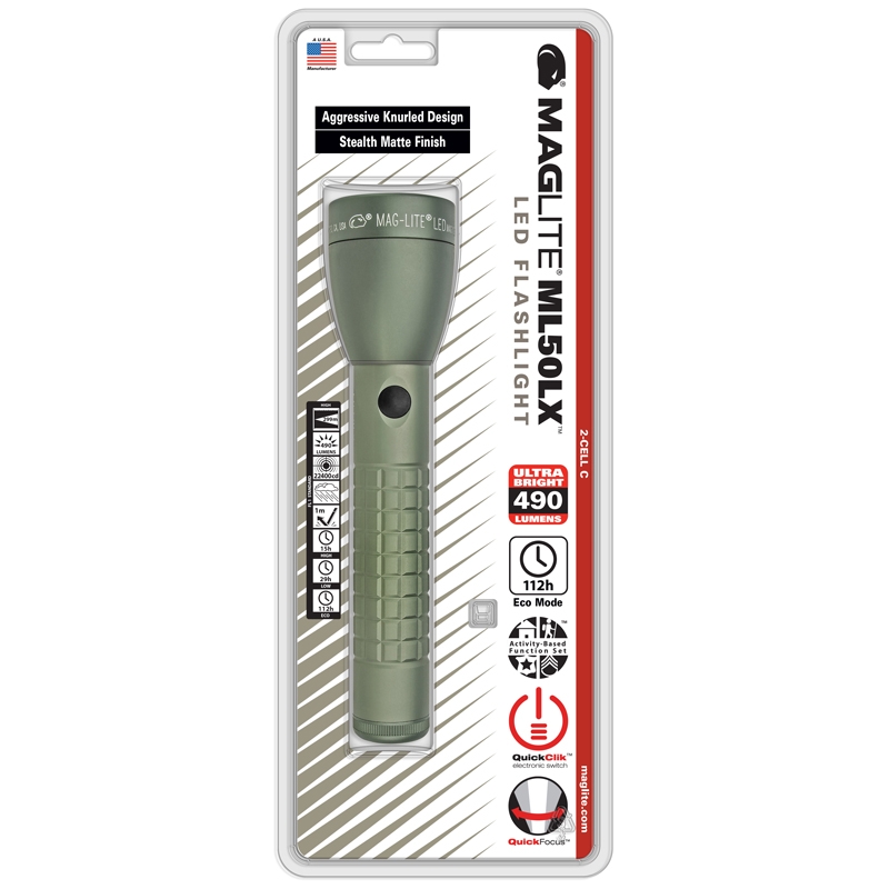 O φακός ML50LX-S2RI6 MAGLITE ML50LX 2x C LED, σε χακί χρώμα, είναι σχεδιασμένος και κατασκευασμένος σύμφωνα με τα υψηλότερα πρότυπα και με κορυφαίας ποιότητας υλικά. Διαθέτει αναβαθμισμένα χαρακτηριστικά λειτουργίας, για να σας παρέχει το καλύτερο αποτέλεσμα φωτισμού, σε πολλές διαφορετικές και απαιτητικές συνθήκες, με σχεδιασμό που διευκολύνει την χρήση και με γάντια. Με 3 ΕΠΙΛΟΓΕΣ ΛΕΙΤΟΥΡΓΙΑΣ με "Quick-Click", όπως περιγράφονται αναλυτικά παρακάτω, για να σας προσφέρει την αξιοπιστία που χρειάζεστε, την στιγμή που την χρειάζεστε, μία λειτουργία ΜΕΓΙΣΤΗΣ ισχύος για εξαιρετική φωτεινότητα και απόσταση δέσμης φωτός, μία με ΧΑΜΗΛΗ ισχύ για παρατεταμένη διάρκεια χρήσης και μία ECO-MODE, για εξαιρετικά υψηλή διάρκεια μπαταρίας! Η πιο πρόσφατη γενιά τεχνολογίας MAG-LED, για εντυπωσιακή φωτεινότητα, είναι επίσης ενσωματωμένη, για ένα εντελώς νέο επίπεδο φωτεινότητας και ισχύος. Για κάθε επαγγελματία ο οποίος χρησιμοποιεί φακό για εργασία ή ασφάλεια, για ταξιδιώτες αλλά και για κάθε χρήστη οποίος θέλει να έχει ένα αξιόπιστο εργαλείο φωτισμού για το σπίτι ή το αυτοκίνητο, ο ML50LX C-Cell LED είναι αυτό που χρειάζεται. Επιπλέον, με το ΒΕΛΤΙΩΜΕΝΟ ΣΥΣΤΗΜΑ ΕΣΤΙΑΣΗΣ ΔΕΣΜΗΣ “Quick Focus”, έχετε την δυνατότητα να ρυθμίζετε την διασπορά φωτός της δέσμης, γρήγορα και ακόμα πιο εύκολα, απλά με περιστροφή της κεφαλής του φακού μόνο κατα 25%. Ο φακός είναι κλασσικό μοντέλο MagLite, διαθέτει ολοκληρωμένα ποιοτικό σχεδιασμό και είναι κατασκευασμένος απο πολύ ανθεκτικό κράμα αλουμινίου, για εξαιρετική διάρκεια σε βάθος χρόνου.
