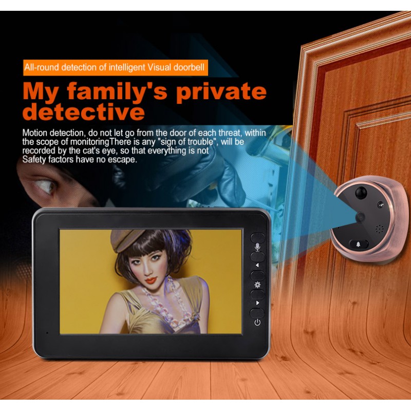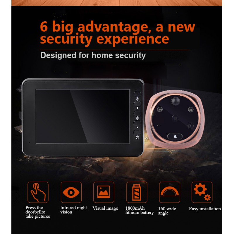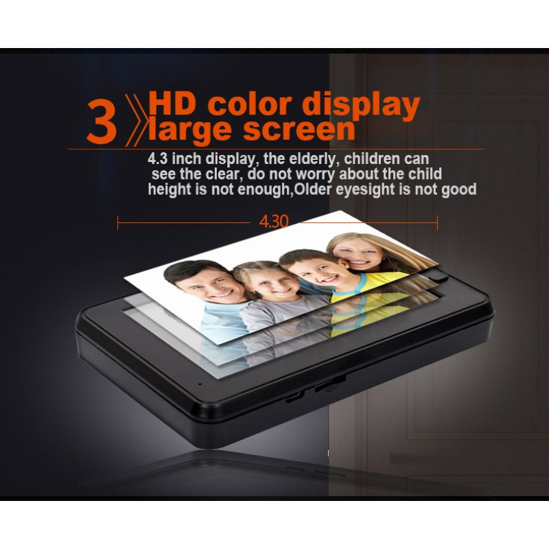 Ματάκι πόρτας με οθόνη και κάμερα για την καταγραφή των επισκεπτών. Ελέγξτε ποιος σας χτυπάει το κουδούνι και βγάλτε τον φωτογραφία με το ψηφιακό ματάκι πόρτας!!! Διαθέτει 4.3 ιντσών έγχρωμη οθόνη και ταιριάζει απόλυτα σε όλες τις πόρτες. Έχει εύκολη τοποθέτηση και σας προσφέρει μία επιπλέον ασφάλεια και άνεση για εσάς και την οικογενειά σας.