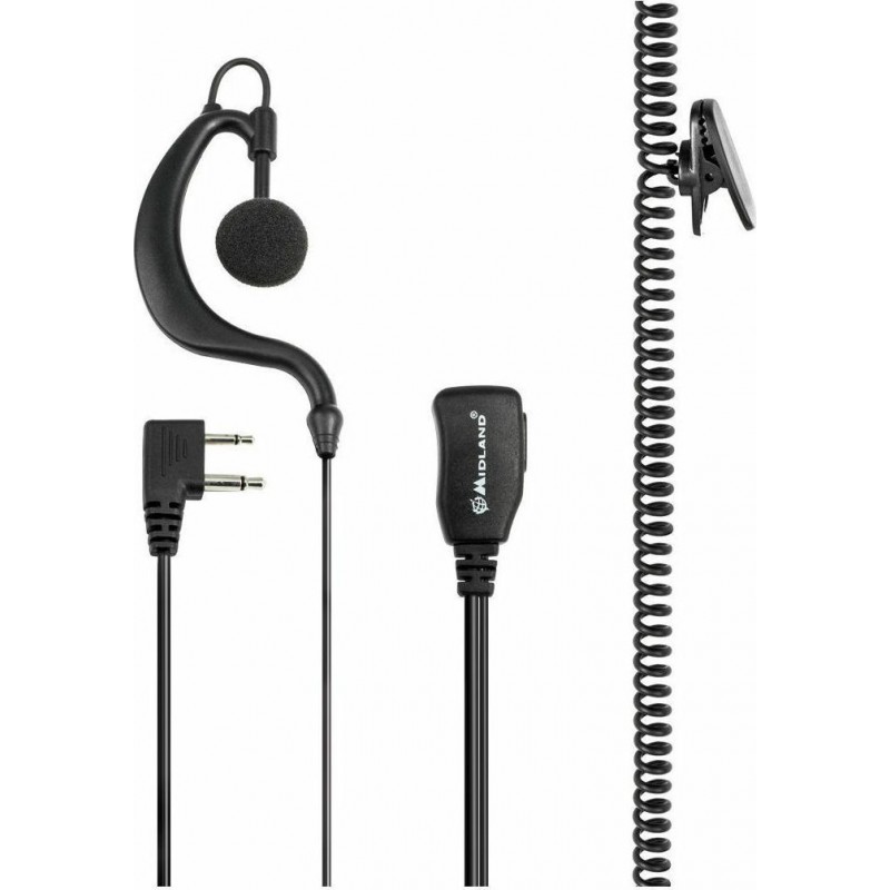 Ακουστικό ασύρματου πομποδέκτη από την Midland με ενσωματωμένο μικρόφωνο. Διαθέτει πλήκτρο χειρισμού.