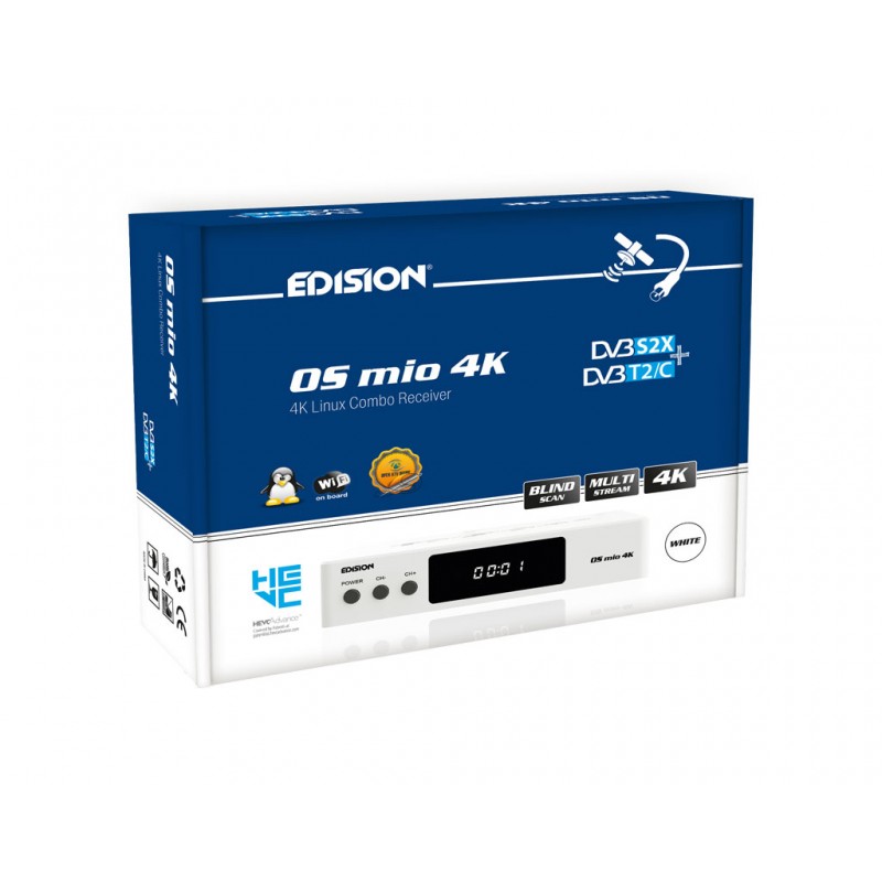 Ο EDISION OS mio 4K είναι ένας Enigma2 Combo δέκτης με προσιτό για την κατηγορία του κόστος, καθώς με τα νέας τεχνολογίας tuners του μπορεί να λαμβάνει δορυφορικά κανάλια που μεταδίδονται με το εκτεταμένο πρότυπο DVB-S2X, καθώς και μέσω Multi Stream εκπομπών, ενώ λαμβάνει και τα κανάλια της επίγειας ψηφιακής τηλεόρασης. Υποστηρίζει UHD αναλύσεις (3840x2160 p50/60) και το πρότυπο συμπίεσης H.265/HEVC, αποκωδικοποιώντας έτσι και τα UHD δορυφορικά κανάλια. Υποστηρίζει ρυθμιζόμενη λειτουργία PiP (Picture in Picture) που επιτρέπει στο χρήστη να εμφανίζει ταυτόχρονα δύο κανάλια έως Full HD ανάλυσης στην τηλεόραση, ενώ εκτελεί άριστα IPTV streaming. Ο δέκτης χρησιμοποιείται επίσης και σαν media player, εκτελώντας λειτουργίες εγγραφών προγραμμάτων και αναπαραγωγής οποιασδήποτε μορφής αρχείων video και ήχου από εξωτερικά αποθηκευτικά μέσα.