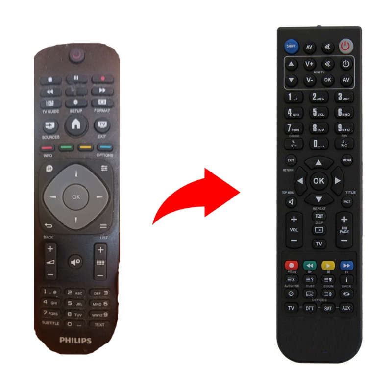 *Για να είναι συμβατό πρέπει το παλιό σας τηλεκοντρόλ να ταιριάζει οπτικά με το τηλεχειριστήριο στην αριστερή μεριά της φωτογραφίας*