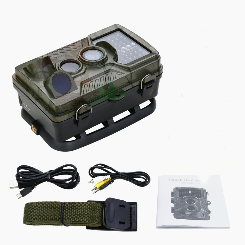 Η κάμερα διαθέτει ενσωματωμένο αισθητήρα PIR ανίχνευσης κίνησης με ρύθμιση ευαισθησίας έως και 20 μέτρα ο οποίος θα ενεργοποιήσει την κάμερα σε κάθε κίνηση ώστε να αρχίσει η αυτόματη εγγραφή. Καταγράφει καθαρή εικόνα και ήχο, ακόμη και σε πλήρη σκοτάδι. Στη συνέχεια, όλες οι εικόνες και τα βίντεο αποθηκεύονται με ασφάλεια σε μια κάρτα SD έως 32GB για να τα δείτε αργότερα, στην τηλεόραση χρησιμοποιώντας το παρεχόμενο καλώδιο AV, στον υπολογιστή σας με το Micro USB καλώδιο, στην ενσωματωμένη έγχρωμη οθόνη 2’’ της συσκευής.