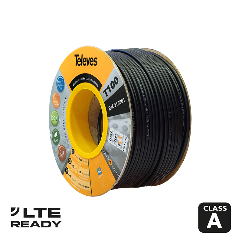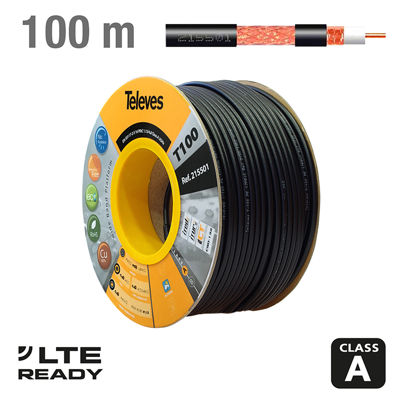 - Καλώδιο ομοαξονικό Televes T-100+, 75Ω, CLASS A, Χαλκός/Χαλκός, χρώματος μαύρου