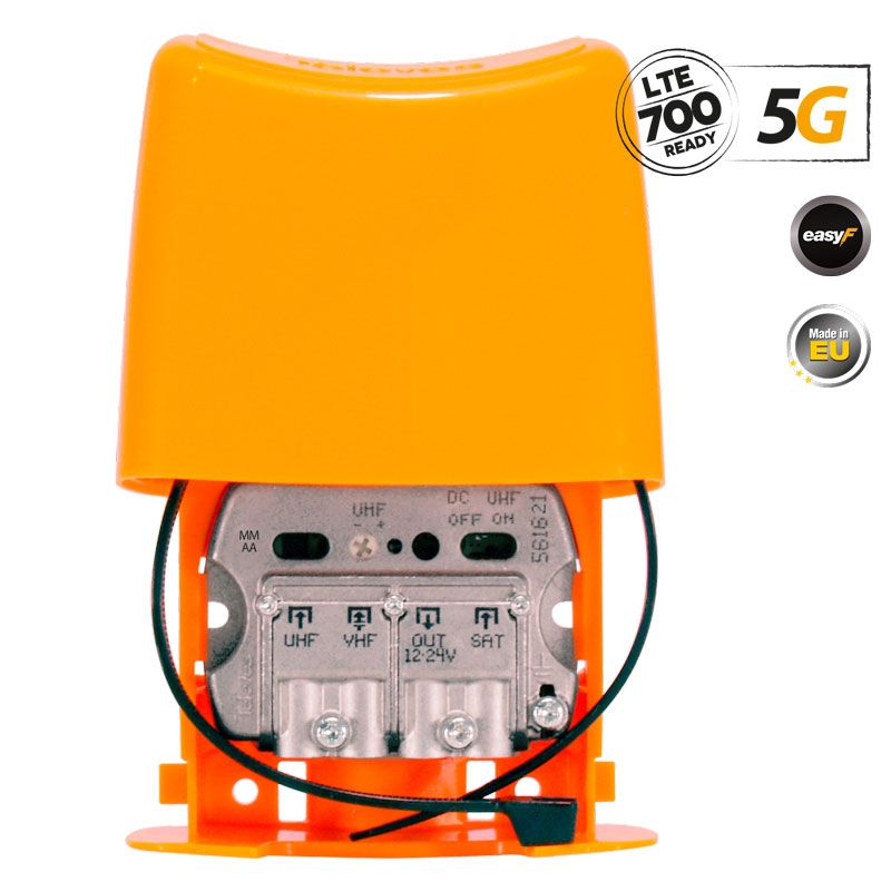 TELEVES 561621 NanoKom ΕΝΙΣΧΥΤΗΣ ΙΣΤΟΥ 5G LTE UHF/VHF/SAT. ΕΝΙΣΧΥΤΗΣ ΙΣΤΟΥ UHF (κανάλια 21...48), VHF/FM και ενσωματωμένο combiner δορυφορικού σήματος. Διαθέτει αποκοπή συχνοτήτων 5G και με σύστημα συνεχούς αυτόματης προσαρμογής στην ρυθμιση στάθμης εξόδου που έχει οριστεί απο τον τεχνικό. Διαθέτει διαίτερα καλαίσθητη και συμπαγή κατασκευή, ενώ είναι κατασκευασμένο απο κράμα Zamak για ηλεκτρομαγνητική προστασία και αντοχή στα καιρικά φαινόμενα με επιπλεόν προστασία απο το πολυκαρβονικό κυτίο στο οποίο περιέχεται. Διαθέτει σύνδεση Easy-F, προσφέροντας τα πλεονεκτήματα του φις F και της δαγκάνας, , χωρίς να χρειάζονται φίς σύνδεσης.