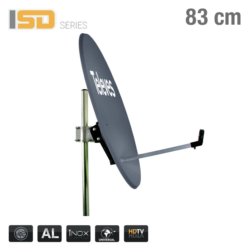 To Televes κάτοπτρο 793113 ISD σε γκρί χρώμα, με λογότυπο Televes με άσπρα γράμματα, ενσωματώνει ειδικά, αναβαθμισμένα χαρακτηριστικά και βελτιστοποιημένο σχεδιασμό κατασκευής, τα οποία παρέχουν ολοκληρωμένα στιβαρή κατασκευή. Το αλουμινένιο κάτοπτρο έχει ανοξείδωτες βίδες και παξιμάδια, ενώ το μπράτσο του LNB, επίσης κατασκευασμένο απο αλουμίνιο, παρέχει εσωτερική όδευση καλωδίου για εύκολη, ασφαλή και αισθητικά ολοκληρωμένη εγκατάσταση. Η δαγκάνα του LNΒ είναι κατασκευασμένη απο ειδικό πολυμερές υλικό το οποίο χρησιμοποιείται σε επαγγελματικές εφαρμογές και υλικά τα οποία απαιτούν τις υψηλότερες και αυστηρότερες προδιαγραφές, και είναι ενισχυμένο και με υαλοϋφασμα (fiberglass), για ακόμα μεγαλύτερη αντοχή στην διάβρωση και την φθορά απο τα καιρικά φαινόμενα. Επιπλέον, η βάση του LNB έχει ενσωματωμένο 10αρι κλειδί για εύκολη ρύθμιση του "παξιμαδιού", ενώ απο την άλλη πλευρά επιτρέπει την χρήση μύτης κατσαβιδιού! Στην πίσω πλευρά, η υποδοχή στήριξης βάσης και τα 2 U, είναι κατασκευασμένα απο κράμα ΖΑΜΑΚ, για αντίσταση στην διάβρωση. Ως Televes προϊόν, έχει σχεδιαστεί και κατασκευαστεί για να παρέχει εύκολη συναρμολόγηση και εγκατάσταση, παρέχοντας φάσμα κλίσης (elevation/tilt) απο 0 έως και 90 μοίρες!