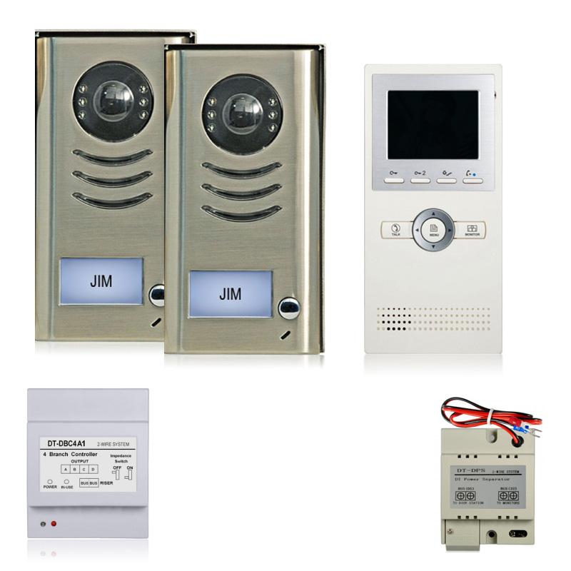 Πλήρες σετ Έγχρωμης θυροτηλεόρασης 2 καλωδίων με 2 εισόδους, 1 μόνιτορ