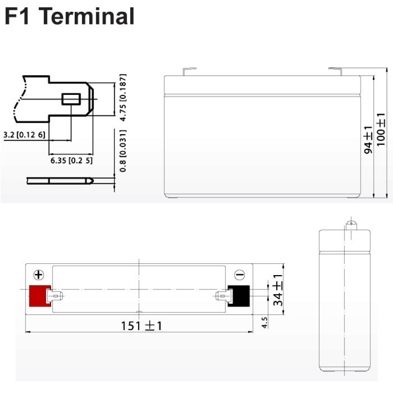 Διαστάσεις: - μήκος: 15.1 cm - πλάτος: 3,4 cm - ύψος: 9,4 cm - Τύπος Terminal: F1