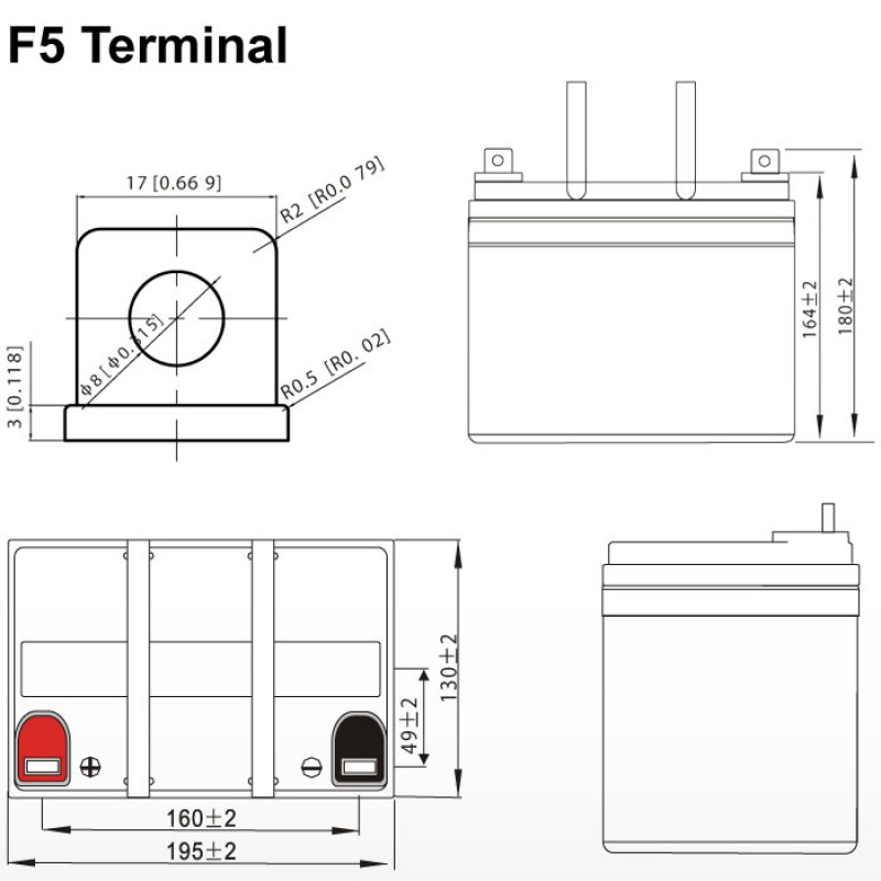Διαστάσεις: - Μήκος: 195mm - Πλάτος: 130mm - Ύψος: 164mm - Τύπος Terminal: F5