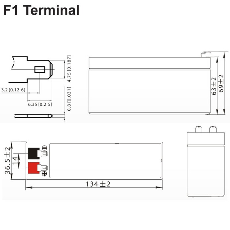 Διαστάσεις: - μήκος: 13.4 cm - πλάτος: 3.65 cm - ύψος: 6.3 cm - Τύπος Terminal: F1