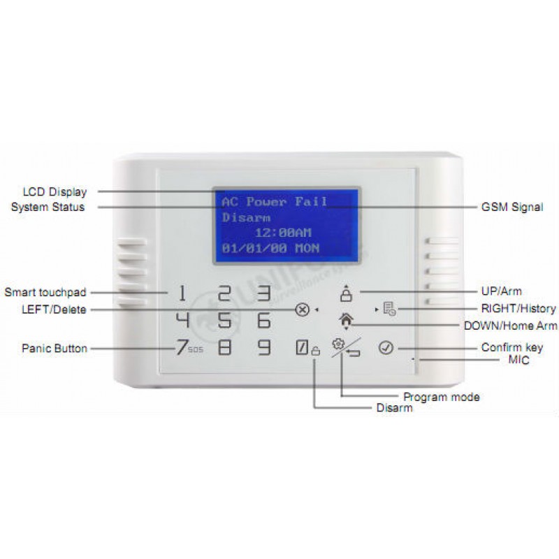 Αυτό το σύστημα ασφαλείας περιλαμβάνει 30 ασύρματες και 4 ενσύρματες ζώνες, που δουλεύουν με έως και 120 αισθητήρες ή αξεσουάρ ασύρματης ασφάλειας. Διαφορετικό από τα παραδοσιακά συστήματα συναγερμών, το σύστημα αυτό έχει πληκτρολόγιο αφής, καθώς και ενσωματωμένη οθόνη LCD 4 γραμμών. Χάριν του πολύ εύκολου μενού το σύστημα αυτό μπορεί πολύ εύκολα να εγκατασταθεί τόσο από ιδιώτες όσο και από επαγγελματίες τεχνικούς εγκαταστάτες συναγερμών.